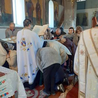 Slujba a fost savarsita de un sobor de preoti, iar Parohul a multumit tuturor celor prezenti, a daruit iconite cu Invierea Domnului si cu Sfantul Nicolae si a poftit toti participantii la agapa frateasca.